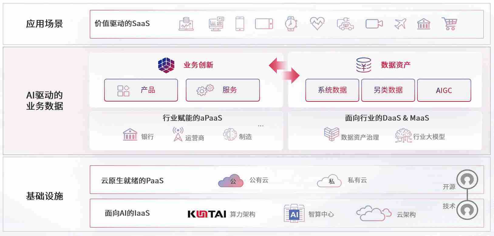 数字时代,,围绕企业数字化转型的关键要素,,,PG数码开创性的提出数云融合战略和技术体系框架,,,着力在云原生、、、、数字原生、、、、AI原生和信创产业上架构产品和服务能力,,,,为处在不同数字化转型阶段的快消零售、、、、汽车、、金融、、医疗、、、政企、、教育、、、运营商等行业客户提供泛在的敏捷IT能力和融合的数据驱动能力,,,,构建跨界融合创新的数字业务场景和新业务模式,,助力企业级客户建立面向未来的核心能力和竞争优势,,全面推动社会的数字化、、、智能化转型升级。。